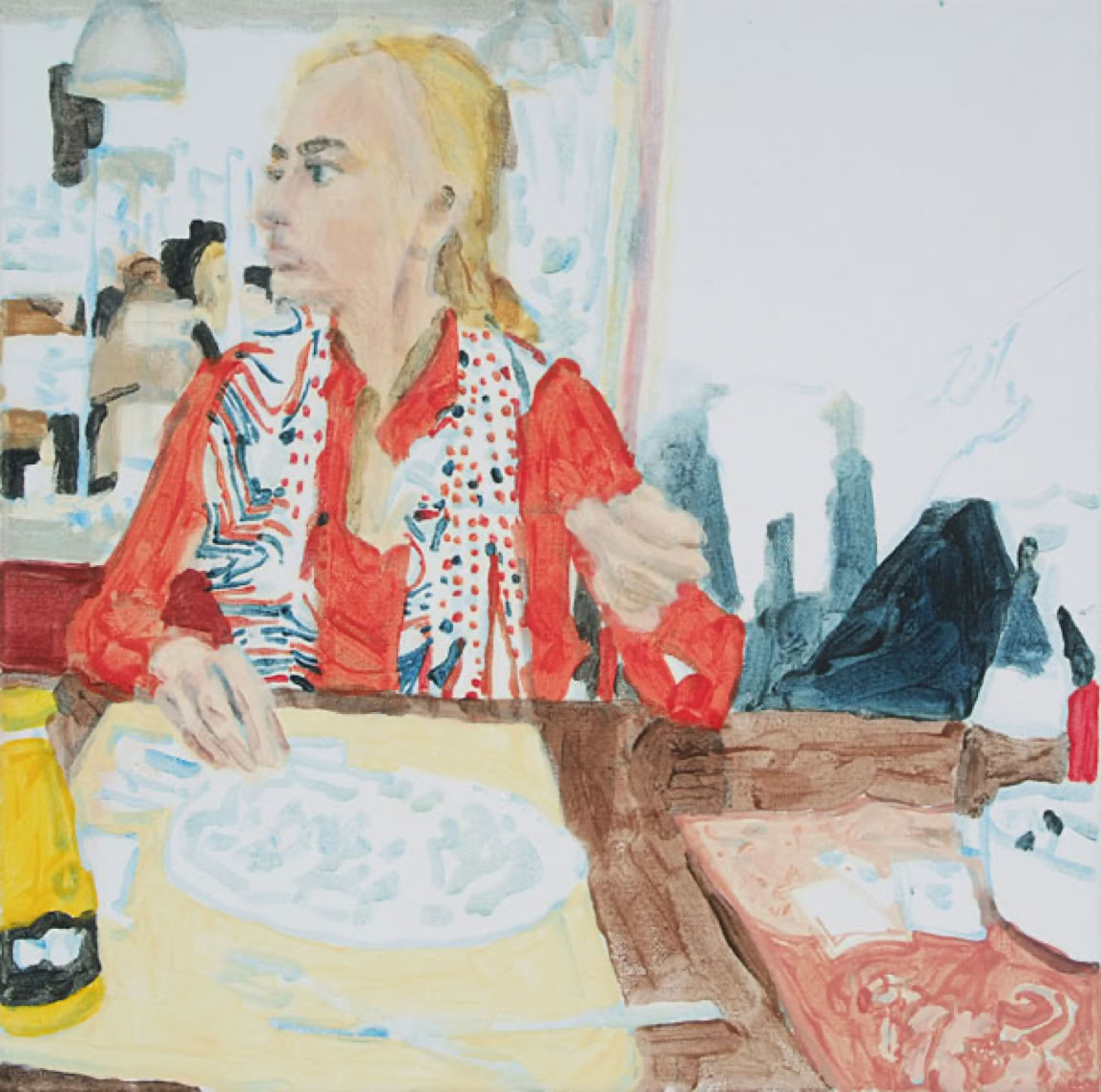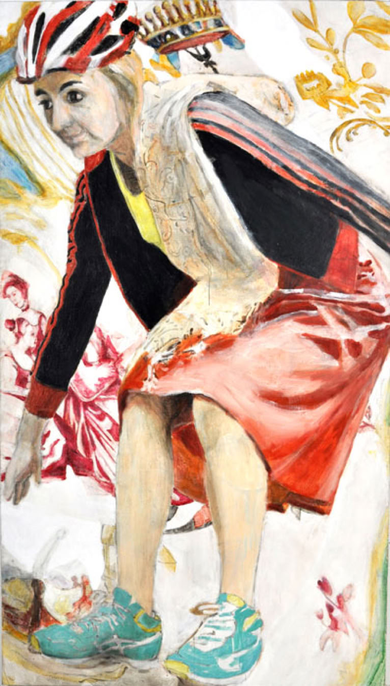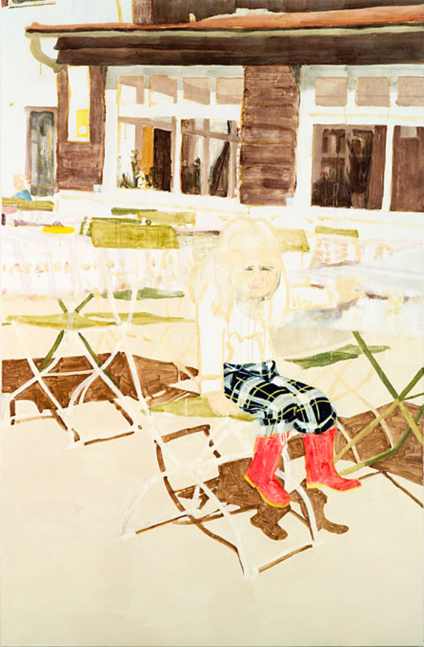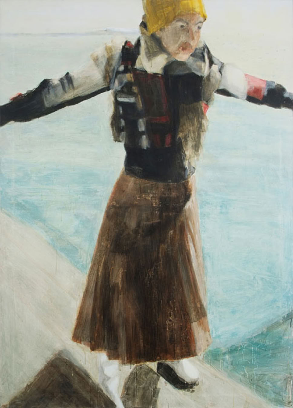 Tellermädchen , 2010 , 230 x 130 cm, Eitempera/ Öl auf Leinwand