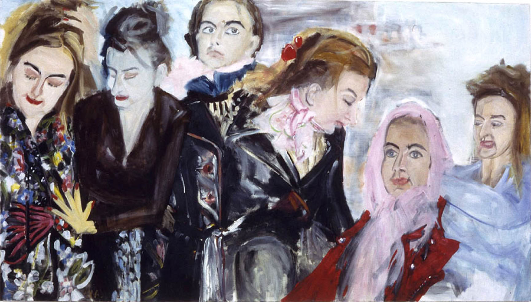 Vor zehn Jahren hat sie ein extrem schmales Hochformat gemalt Selbst mit Fahrrad , 170 x 30 cm, eine spaltbreite Straßenszene. Ein berühmter Vorgänger in Berlin schnitt sich eine turbulent bemalte Leinwand auf die gleiche Höhe zurecht, ebenfalls eine Straßenszene. Im Mittelpunkt steht er selbst mit steifem Hut: der 30jährige Max Beckmann, der sich wie wenig andere in seinen Selbstbildnissen auf die ständige Suche nach dem eigentlichen Ich begab. Begegnen sich hier zufällig zwei auffällige Exemplare unter den malenden Ichforschern auf der Straße?