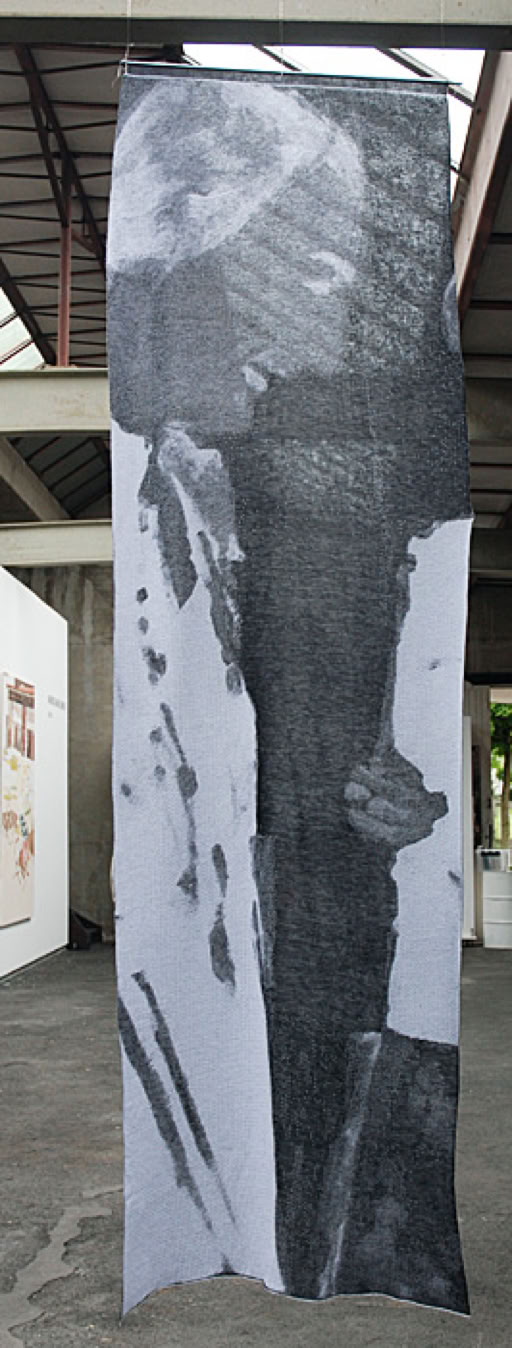 2/3 Selbst , 2008 , 400 x 115 cm, Strickerei, Ausstellungsansicht Kunsthalle Arbon (CH)