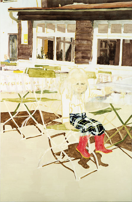 Vor zehn Jahren hat sie ein extrem schmales Hochformat gemalt Selbst mit Fahrrad, 170 x 30 cm, eine spaltbreite Straßenszene. Ein berühmter Vorgänger in Berlin schnitt sich eine turbulent bemalte Leinwand auf die gleiche Höhe zurecht, ebenfalls eine Straßenszene. Im Mittelpunkt steht er selbst mit steifem Hut: der 30jährige Max Beckmann, der sich wie wenig andere in seinen Selbstbildnissen auf die ständige Suche nach dem eigentlichen Ich begab. Begegnen sich hier zufällig zwei auffällige Exemplare unter den malenden Ichforschern auf der Straße?