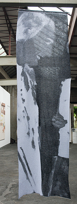 Wie stricke ich ein Selbst? Die Antwort hing frei im Raum einer alten Industriehalle als großes lichtdurchlässiges Strickbild, mit dem Titel Proberaum Selbst. Marion und die Marionetten. Von zwei Seiten zu betrachten, spiegelbildlich, einmal positiv und einmal negativ, seitenverkehrt. 24 x Selbst ist die Strickerei aus dem Jahr 2008 betitelt. 6 x Selbst ging voraus. Diese Arbeit habe ich gesehen, bevor ich die Malerin zum ersten Mal treffen sollte. Sie war schon vor ihrem Erscheinen da.
