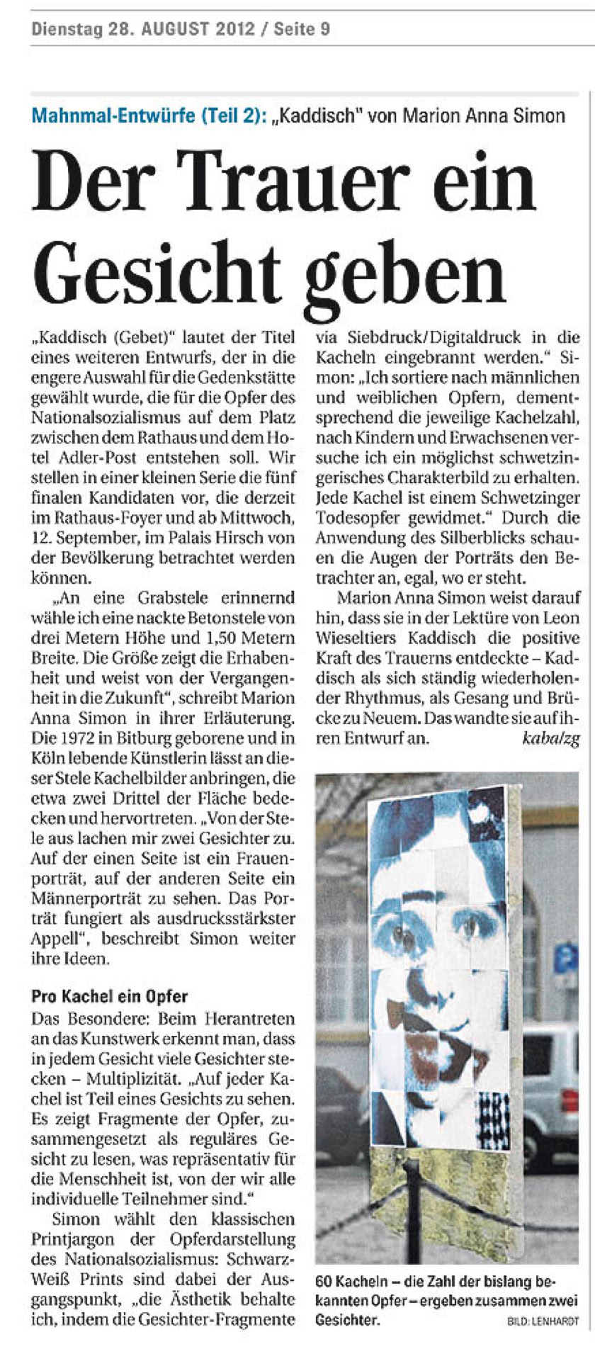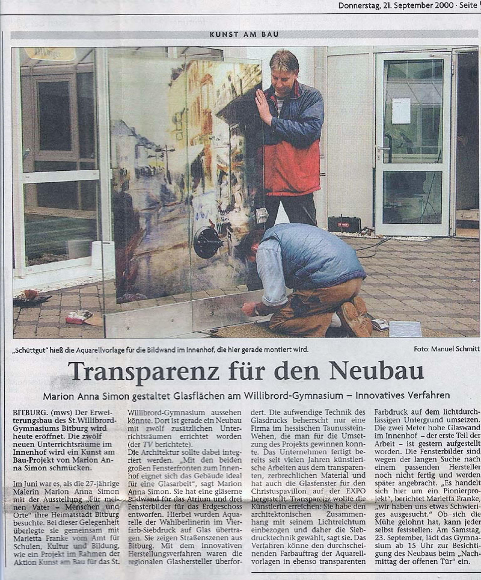 Haus, Auto und Personal (seit 2025) HAUS DER KUNST KYLLBURG (seit 2024) MAS I (2021) `ZOONpoliticon´,`Judith und Salome´ und `der Talisman´(seit 2019) Gemaltes Kaddisch (seit 2017) Der Winterkönig im Schlamm der Kunst (2017) Die heilige Ursula (2012-2013) Salon Arendt (2013) Die Acephalen (ohne Haupt/die Kopflosen) (2013-2016) Wer Friedrich hat, hat die Kunst (2010) Pina Bausch (2009-2011) 6 x Selbst (1999-2012) Das Herz springt in der Brust (2002-2004) Das Deutsche Haus (2001-2005) Für meinen Vater (1998 - 2001) Portrait Zeichnung Performance Glas Fayence Biografie Literatur Presse Kontakt Kunst am Bau Impressum